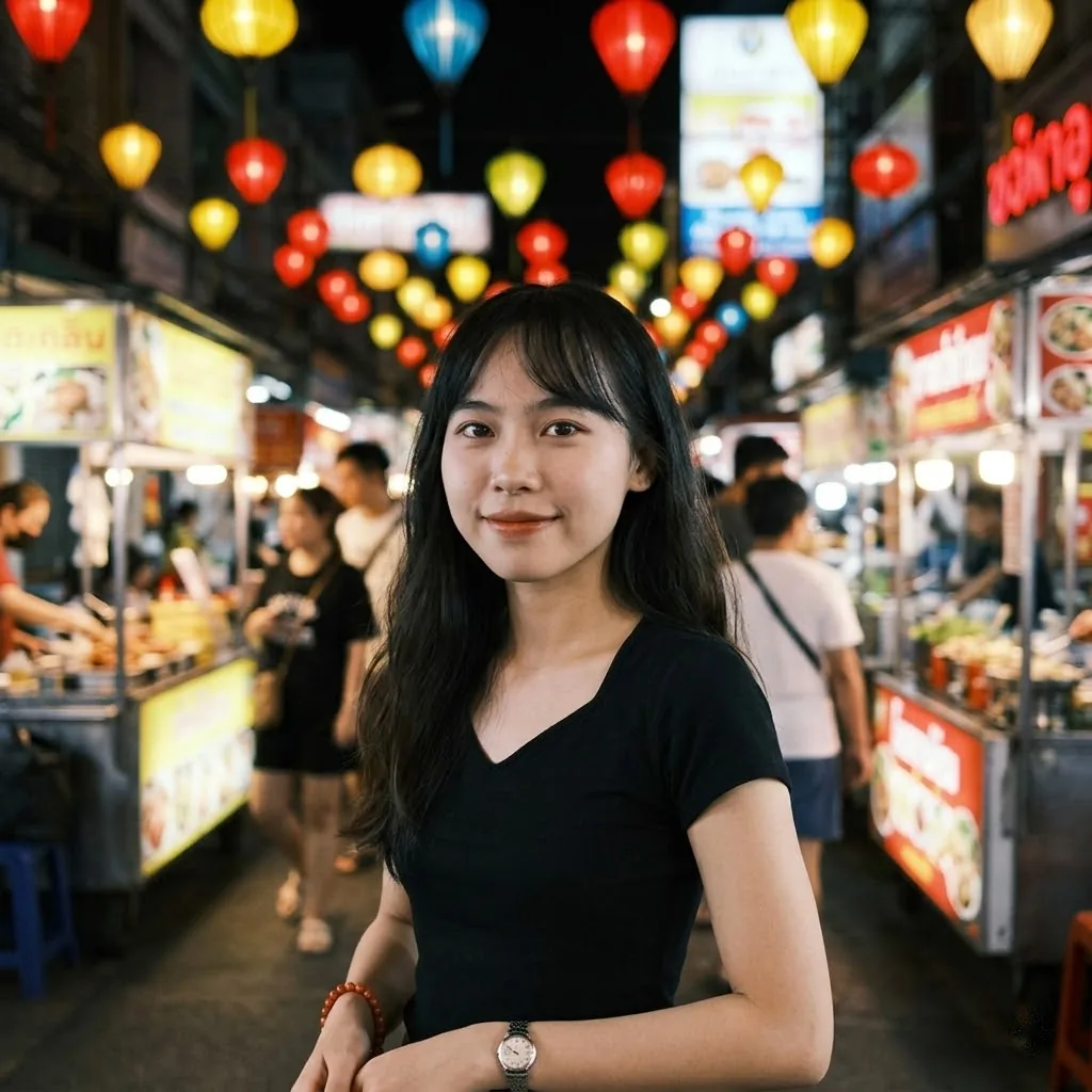 夜市的人声像一条不停向前的河。她站在灯下,短暂地停住——不躲,也不追,只是看清自己要去哪里。