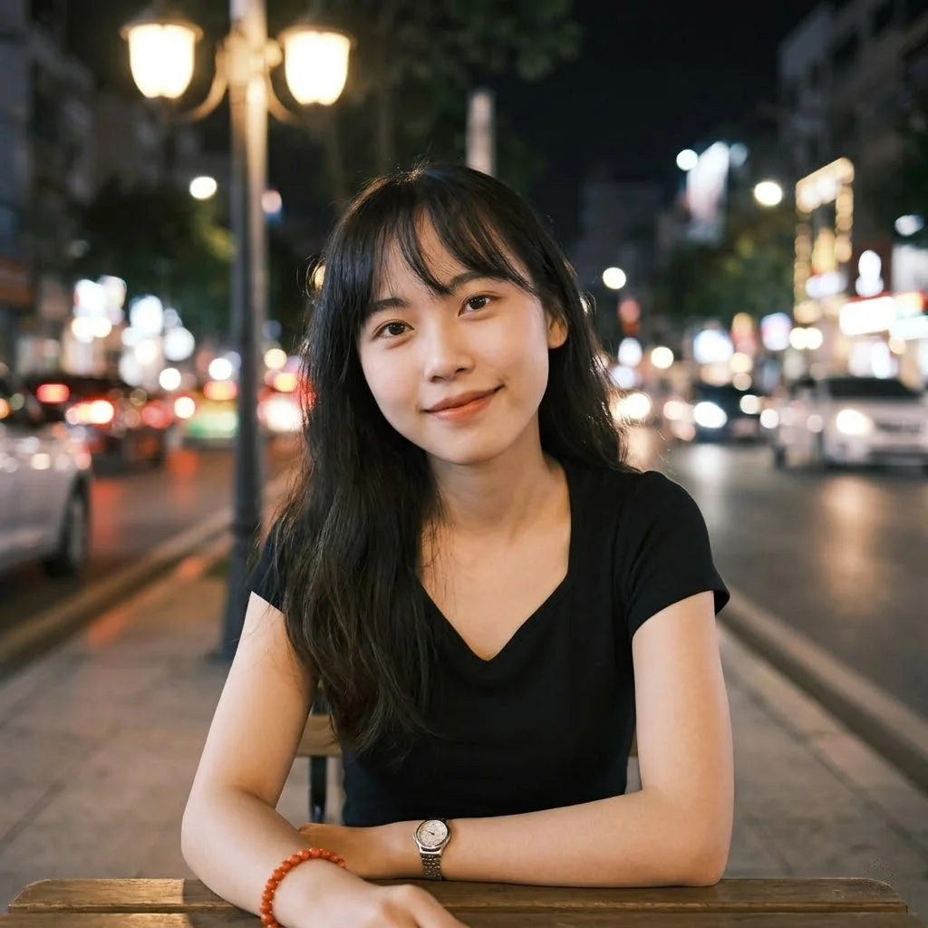 夜晚的街头,路灯把影子拉得很长。她没有急着回家,只是慢慢走着——今天结束了,明天也会被好好迎接。
